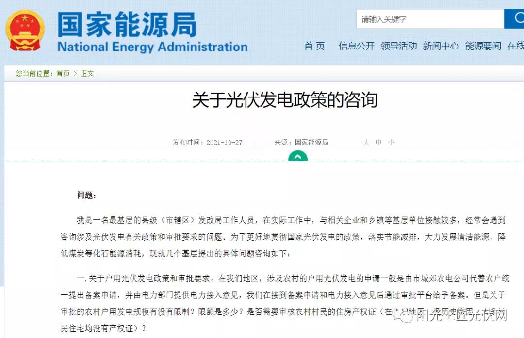 国家能源局:户用光伏没有容量限制!