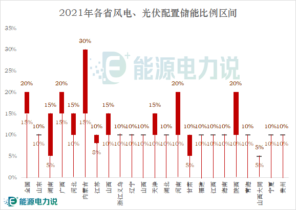 近期,山东、浙江、湖南、广西、江苏、河北相继发布“新能源+储能”相关文件,各省对新能源配建储能的要求略有不同,有十分明确储能比例时长的,也有为支持新能源轻装上阵快速发展不要求强制配储的。11月9日,浙江发改委发布《关于浙江省加快新型储能示范应用的实施意见》,这是首份明确新型储能补贴省级储能政策。对电网测储能,按200元、180元、170元/千瓦·年给与三年容量补贴;设定新型储能示范项目参数,工作寿命10年及以上,额定功率下连续放电时间不低于2小时。考虑浙江目前电网消纳能力,暂不要求新能源强制配建储能,全力支持新能源轻装上阵,加快发展。10月13日,湖南省发改委发布《关于加快推动湖南省电化学储能发展的实施意见》,力争到2023年建成电化学储能电站150万千瓦/300万千瓦时以上。建立“新能源+储能”机制。风电、集中式光伏发电项目应分别按照不低于装机容量15%、5%比例(储能时长2小时)配建储能电站。新增项目配建储能电站应与主体工程同步投产使用,存量项目应于2022年底前落实配建储能容量。对于没有条件配建储能电站的项目,可通过市场租赁方式按上述比例落实储能容量。10月9日,河北省能源局发布《关于做好2021年风电、光伏发电市场化并网规模项目申报工作的补充通知》明确:2021年市场化并网项目需配建调峰能力,原则上,南网、北网市场化项目配建调峰能力分别不低于项目容量的10%、15%,连续储能时长不低于3小时,配建调峰能力应与市场化并网项目同步建成投产。2021年7月23日,国家发展改革委、国家能源局联合印发《关于加快推动新型储能发展的指导意见》,健全“新能源+储能”项目激励机制。对于配套建设或共享模式落实新型储能的新能源发电项目,动态评估其系统价值和技术水平,可在竞争性配置、项目核准(备案)、并网时序、系统调度运行安排、保障利用小时数、电力辅助服务补偿考核等方面给予适当倾斜。截止2021年11月17日,山东、浙江、湖南、广西、内蒙古、陕西等22省已相继发布新能源发电项目储能配置要求,整体储能配置比例区间在5%~30%,备电时长在1h~4h。在储能配置比例区间上,内蒙古各地区风光项目的配置比例区间较大,在15%-30%之间,其余省份在10%~15%之间。湖南、广西、天津三省风电配储比例较光伏配储高,湖南风电15%、光伏5%,广西风电20%、光伏15%,天津风电15%、光伏10%。2021年以来,国家、地方层面陆续出台储能相关政策,推动新型储能市场化发展,优化分时电价结构,进一步催化行业发展。