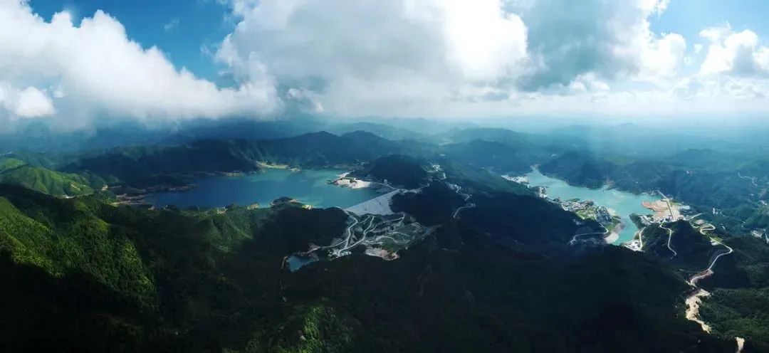 梅州抽水蓄能电站二期工程与一期工程共用上、下水库,能够在实现120万千瓦装机的前提下,大幅降低工程投资和地面工程施工。图为电站上、下水库。
